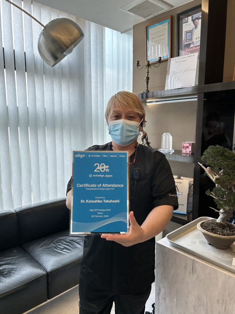 当法人理事長高橋は、長年の実績を認められ先月インビザラインジャパン様から20周年記念イベントパーティーに御招待頂き、担当者から直接記念盾を頂きました。