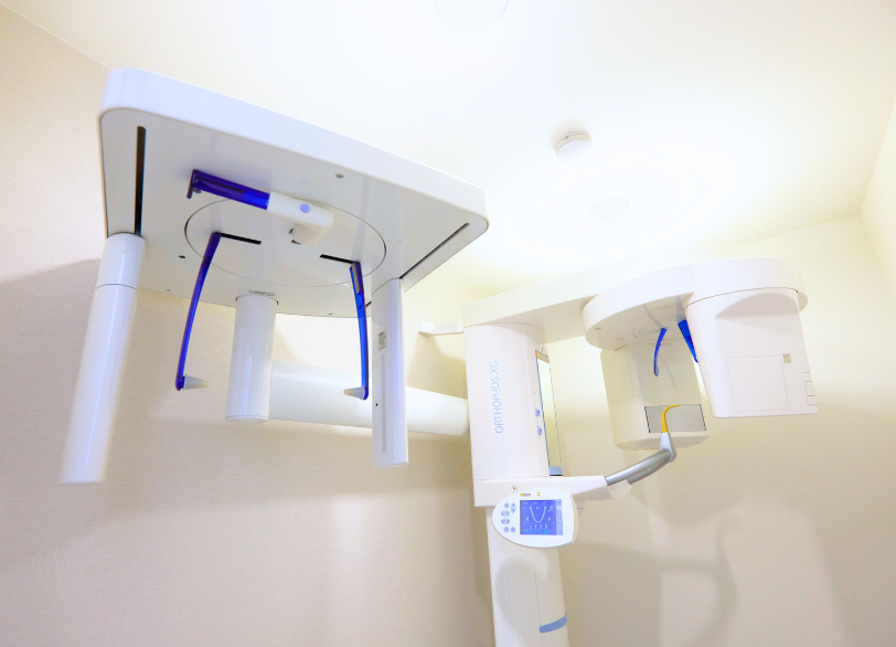 歯科用CTは従来のレントゲンでは見ることのできなかった顎の骨の構造、神経や血管の位置、歯の根の状態などを立体的(3D)な画像で正確に把握するための装置です。